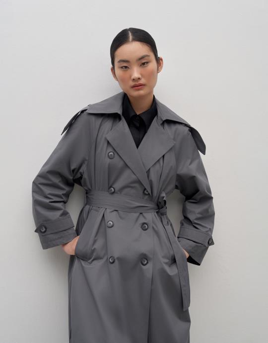 Trençkot boyu 120 cm, geniş kalıplıdır.