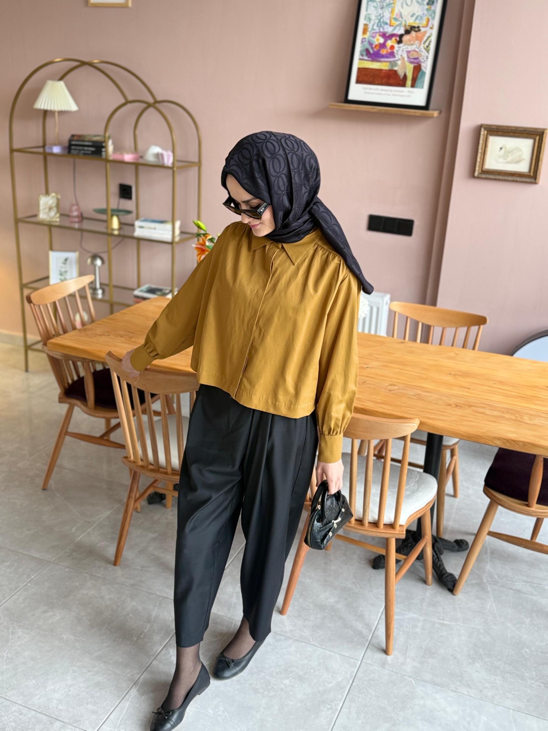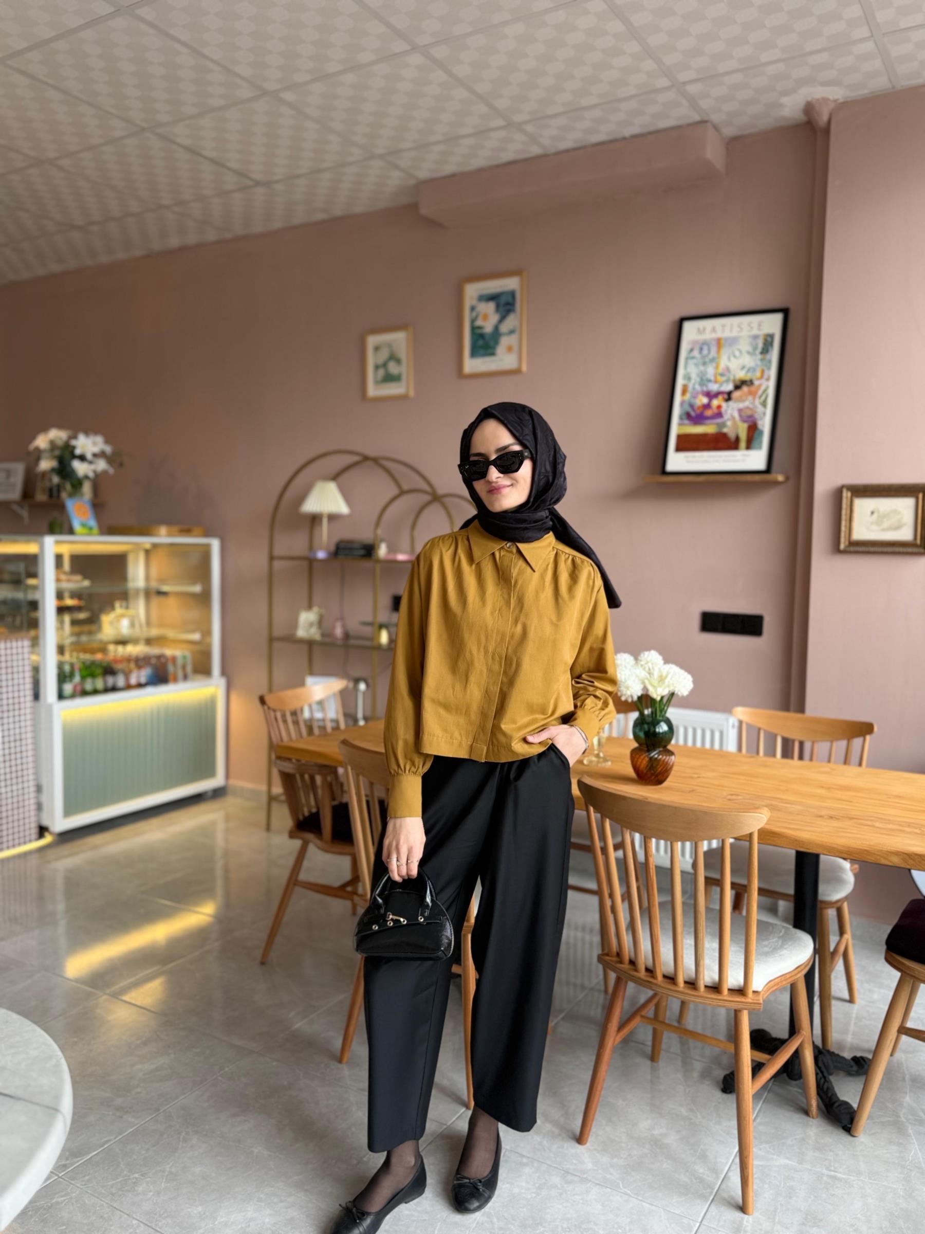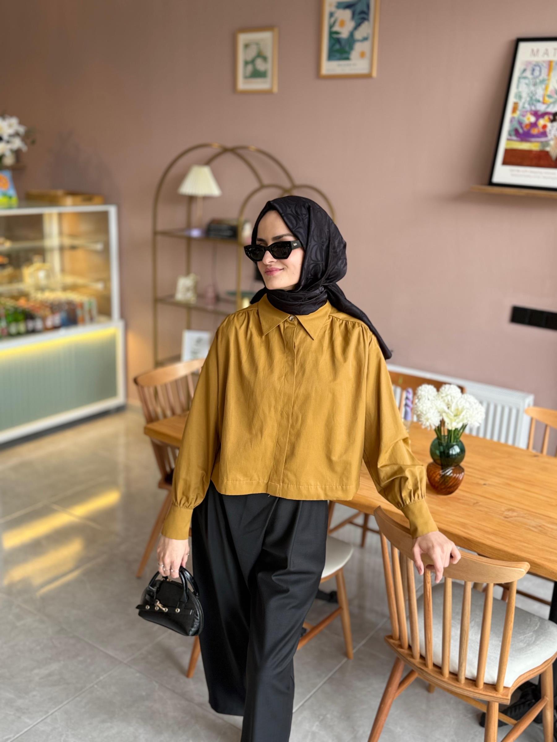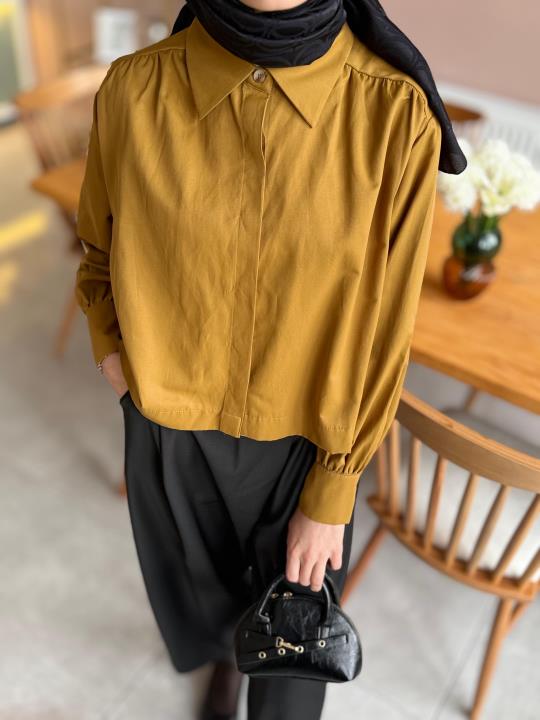 crop gömlek Hardal