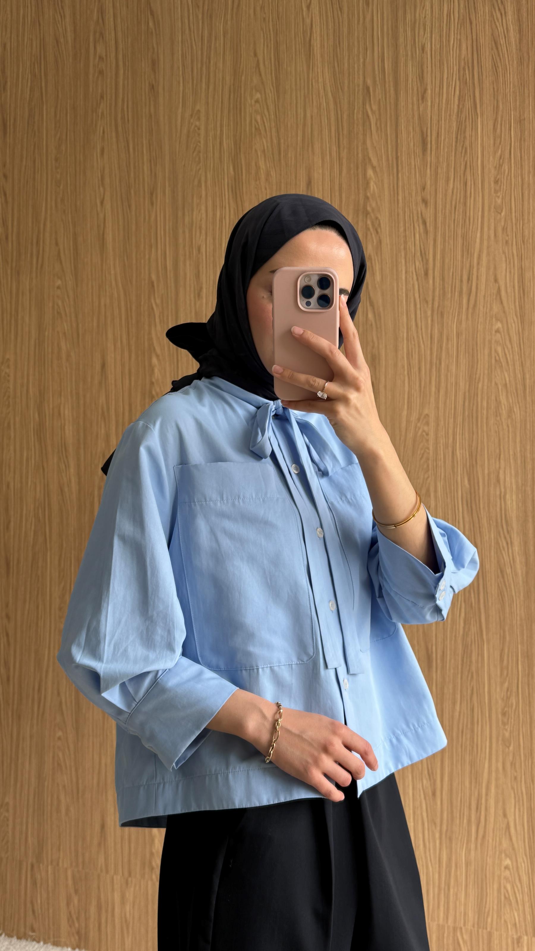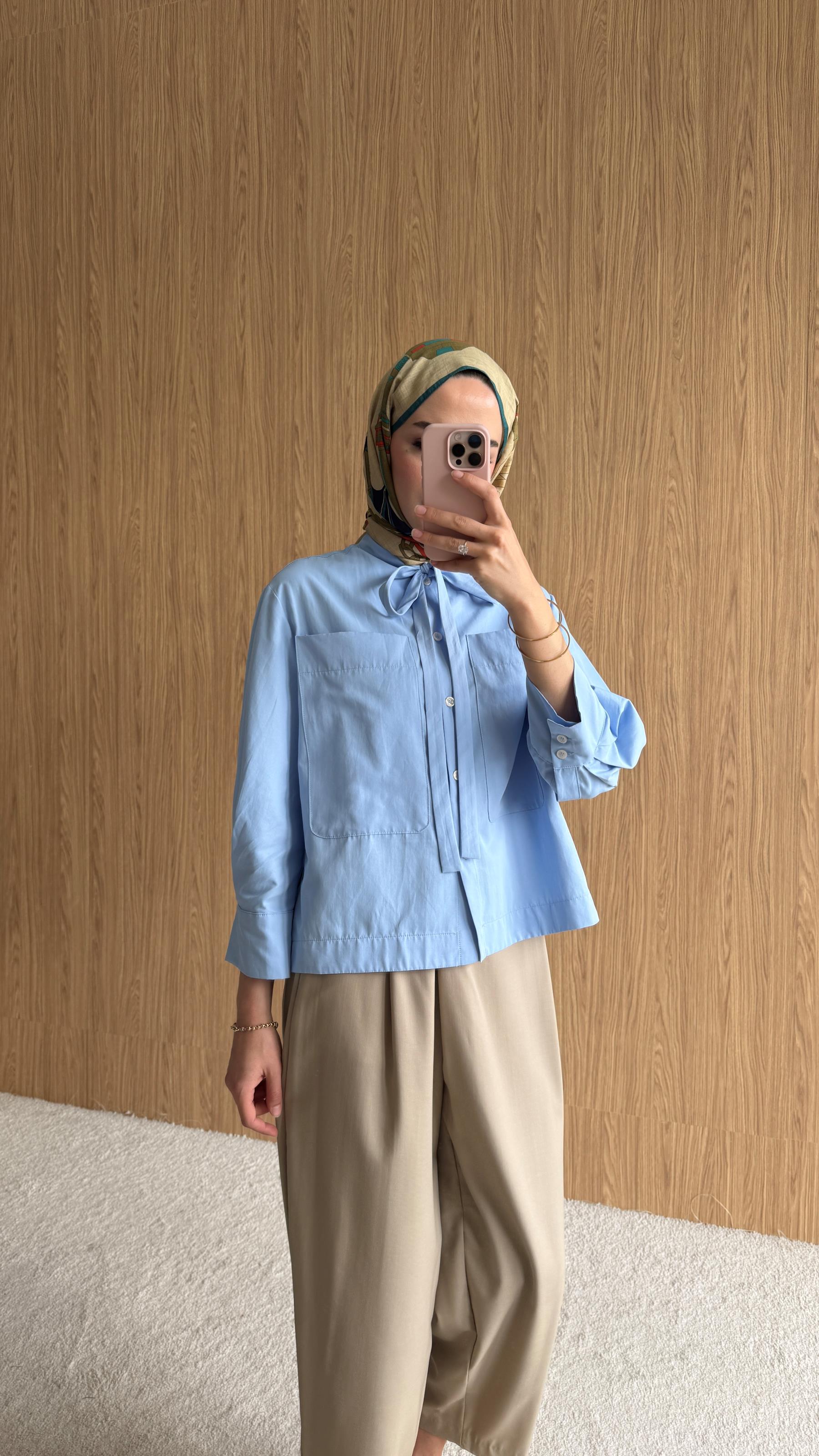 Önden büyük cep modeli arkada bir adet pilise detayı kol geniş manşet