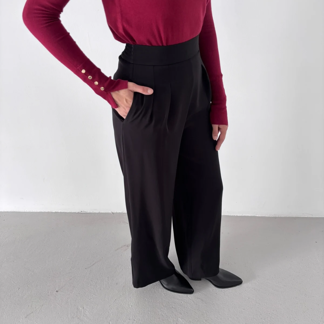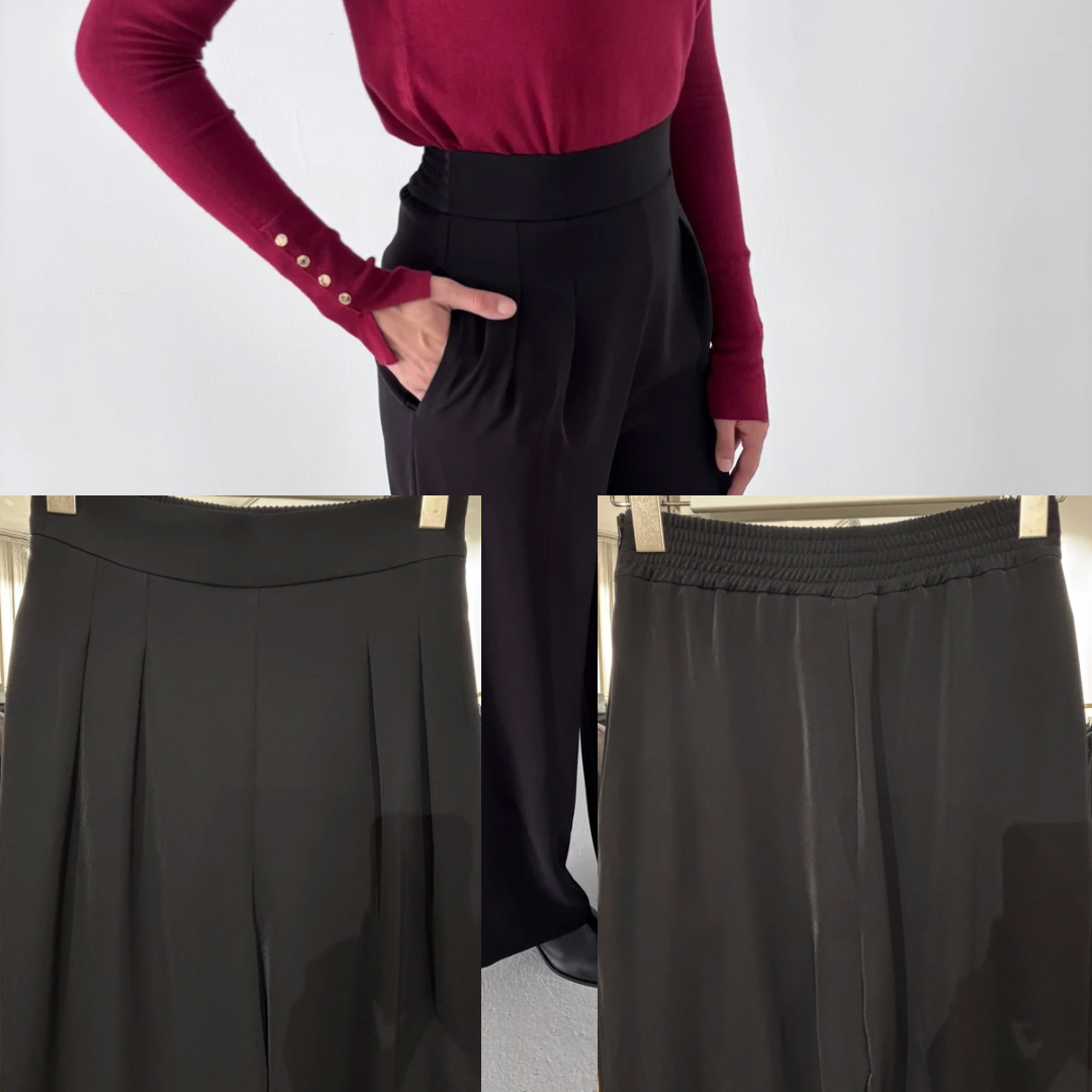Yüksek bel mevsimlik dökümlü kumaş pantolon